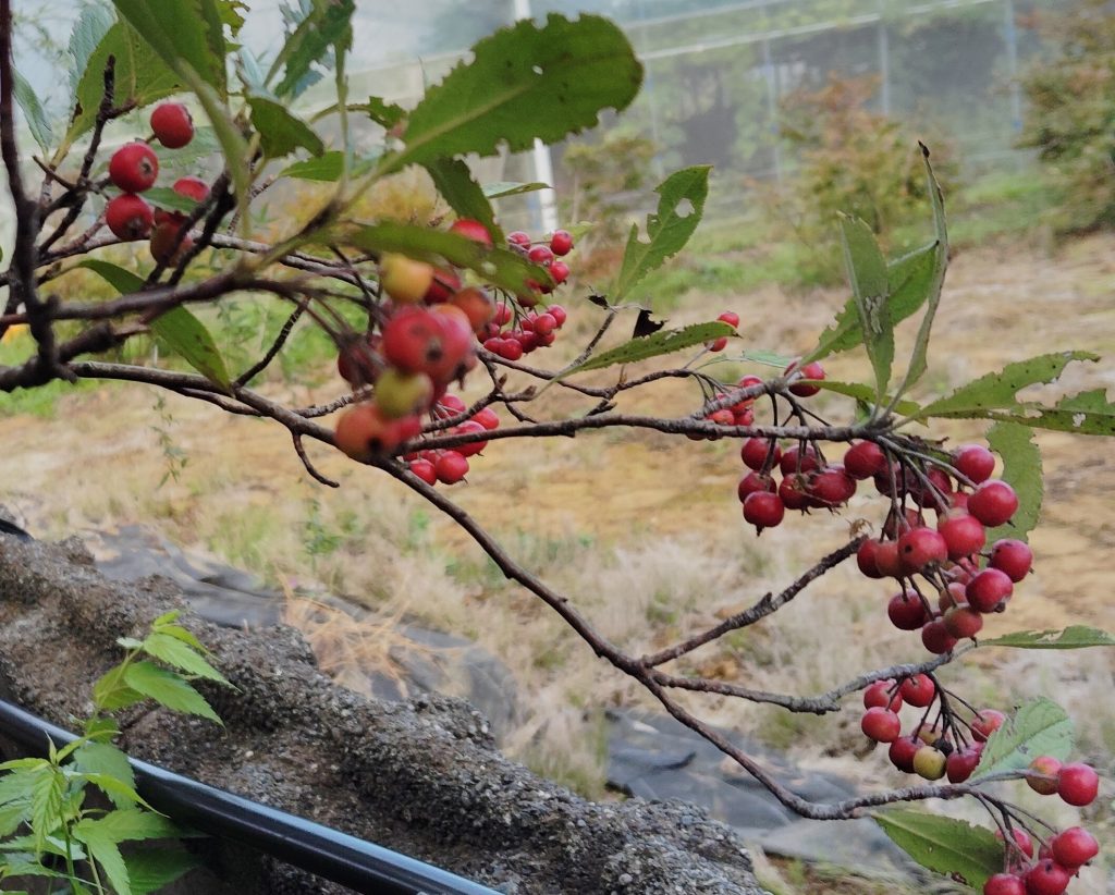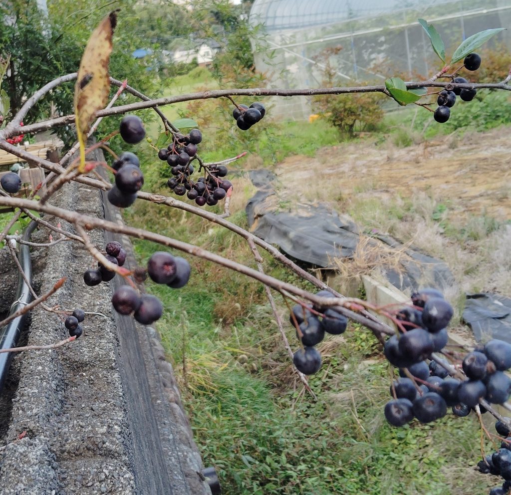 柿と残りのシャインマスカットは、もう少しで甘みが増しておいしくなりそうです。(The persimmons and remaining Shine Muscat grapes will soon become sweeter and more delicious.)