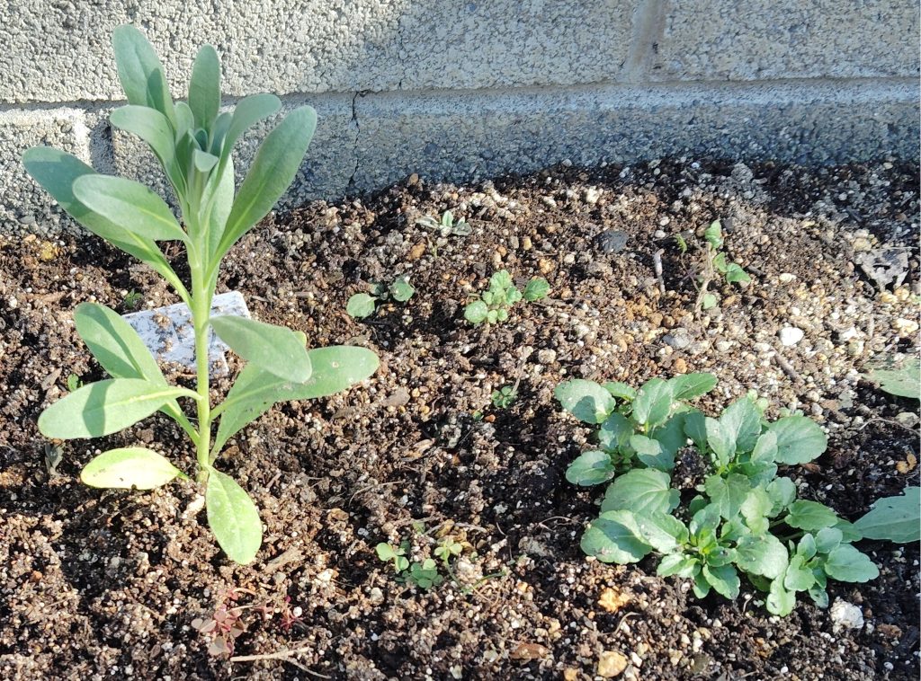 冬の庭をストックとパンジーとビオラで飾ろうと計画しました。(I planned to decorate my winter garden with stock, pansies, and violas.)