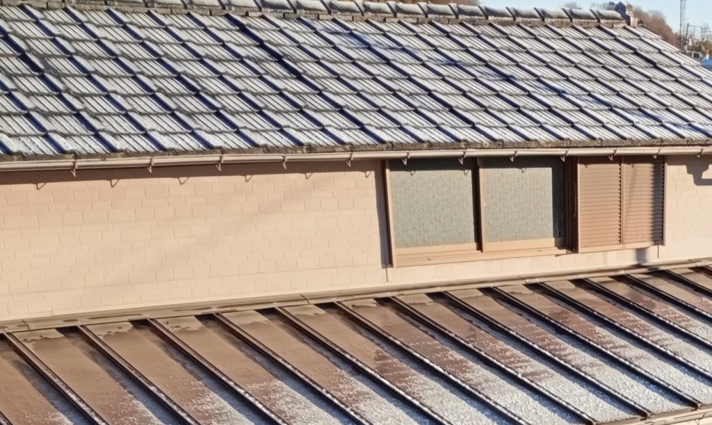 朝、屋根の上に残っていました。(It was still on the roof in the morning.)