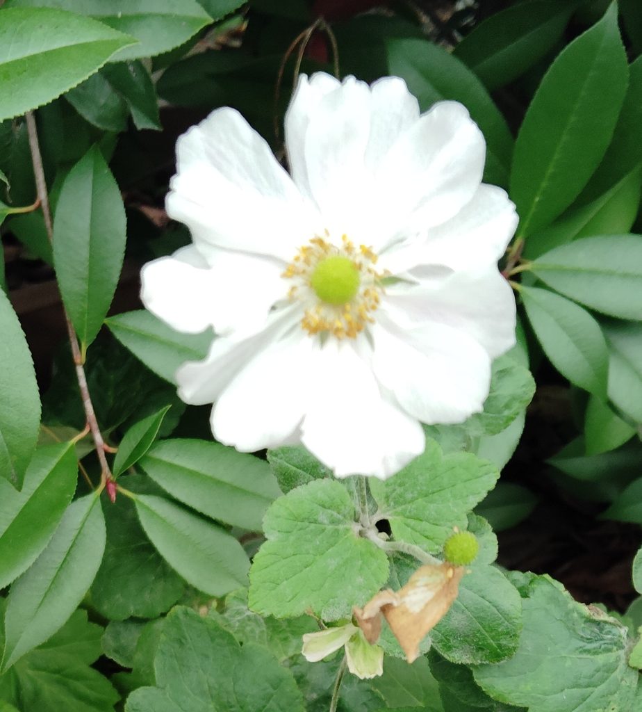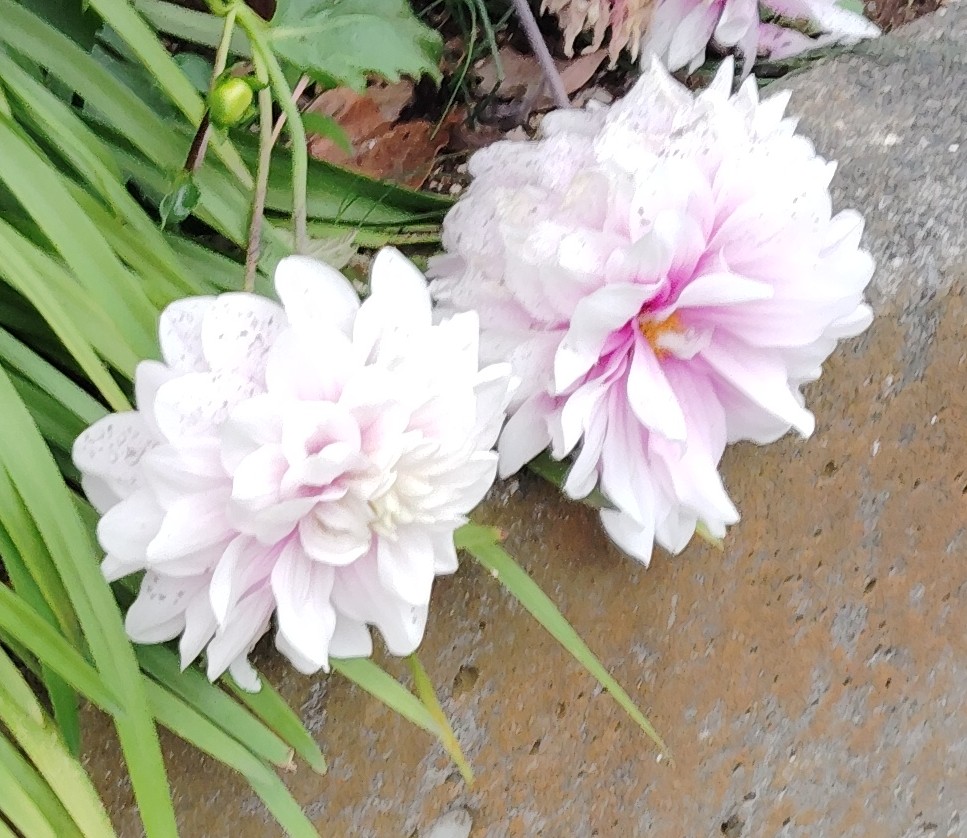 でも、昨日は涼しくてバス停のそばの白い花も元気そうでした。(But yesterday it was cool, and the white flowers by the bus stop looked healthy.)