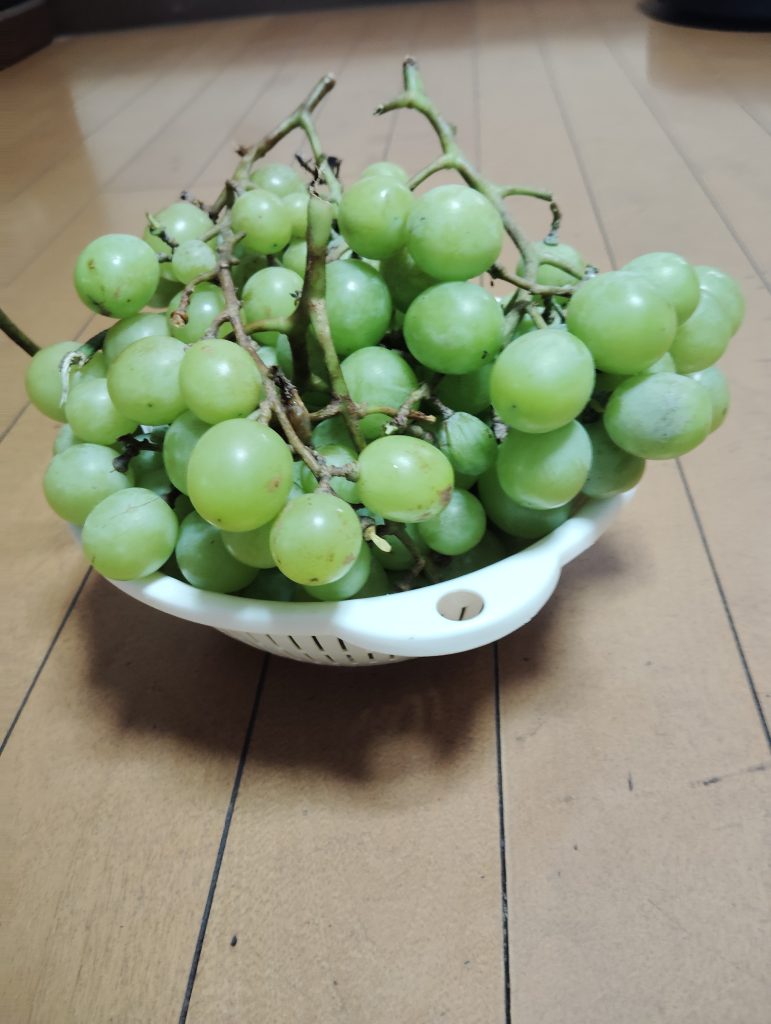 柿と残りのシャインマスカットは、もう少しで甘みが増しておいしくなりそうです。(The persimmons and remaining Shine Muscat grapes will soon become sweeter and more delicious.)