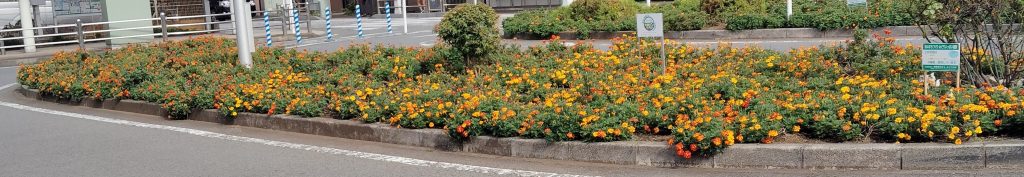 今、菊が、蕾をたくさんつけています。(Right now, the chrysanthemums are blooming with blooms.)