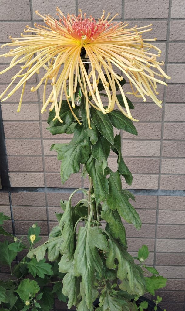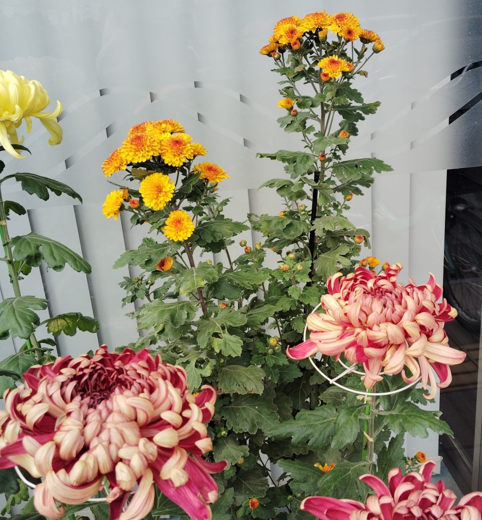 そして、金融機関の庭に丁寧に育てた菊がありました。(And there were carefully cultivated chrysanthemums in the garden of a financial institution.)